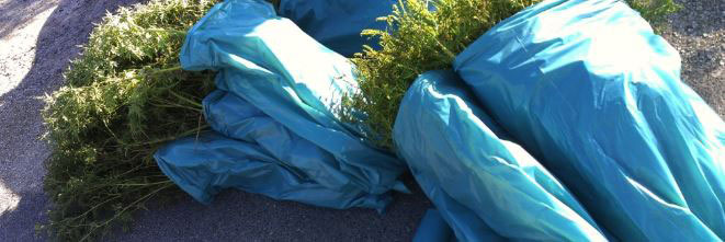 Ragweed harvested with roots and wrapped in plastic for transport.