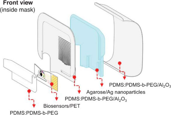 The biosensor in the smart mask connects via Bluetooth to other smart devices.