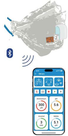 On the outside of the mask, the sensors detect compounds such as nitrite (NO2–) and ammonium (NH4+) and connect wirelessly via an app to other smart devices.