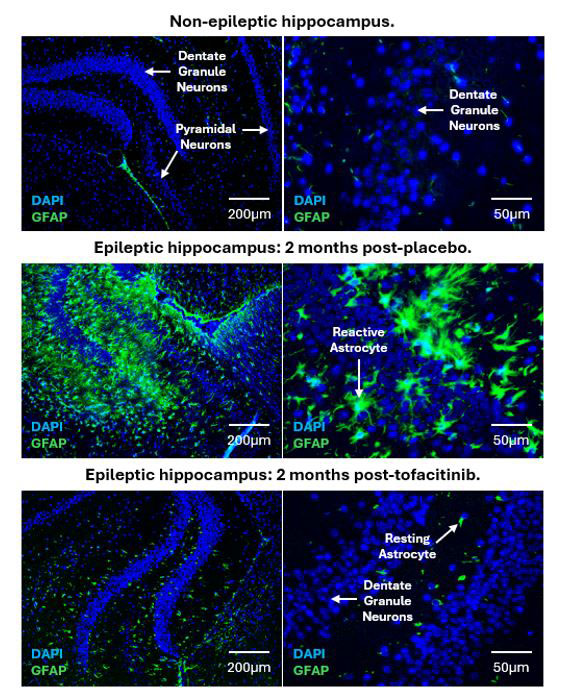 - Hoffman OR, Koehler JL, Espina JEC, Patterson AM, Gohar ES, Coleman EM, Schoenike BA, Espinosa-Garcia C, Paredes F, Varvel NH, Dingledine RJ, Maguire JL, Roopra AS. Disease modification upon 2 weeks of tofacitinib treatment in a mouse model of chronic epilepsy. Sci Transl Med. 2025 Mar 19;17(790):eadt0527. https://www.science.org/doi/10.1126/scitranslmed.adt0527