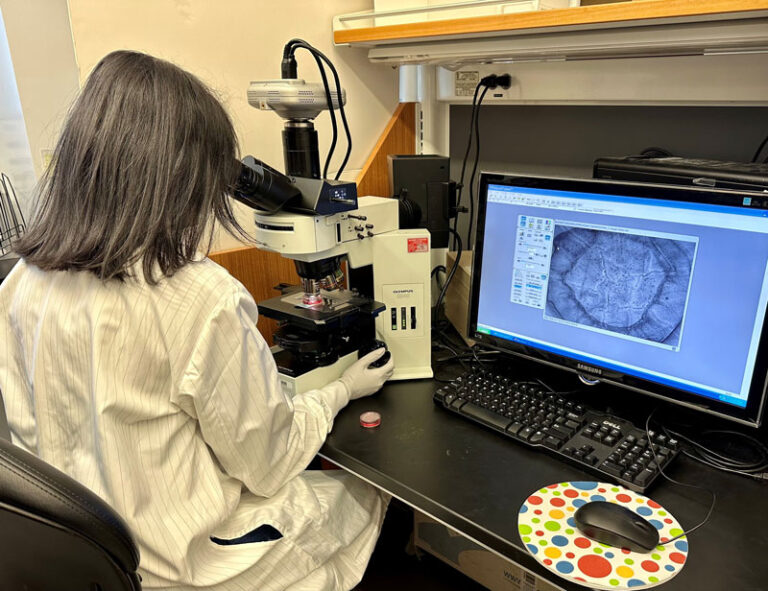 Dr. Shah monitoring the wound healing process of a diabetic cornea.