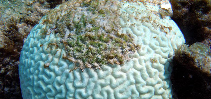 - Ocean acidification. As more carbon dioxide is absorbed by the oceans, ocean waters become more acidic. Under acidic conditions, the coral exoskeletons begin to dissolve, making the corals more vulnerable to storms, disease, and bleaching.