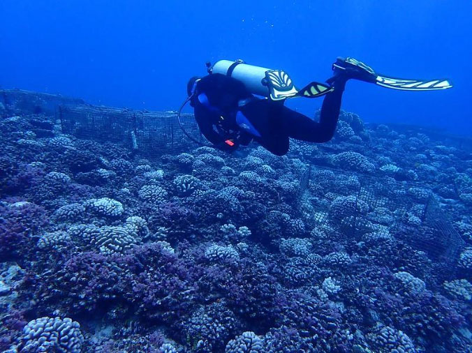 This research took place off the coast of Moorea, an island of French Polynesia located in the South Pacific, about half-way between South America and Australia. Moorea offers a prime site for the researchers because the island houses the National Science Foundation’s Long-Term Ecological Research (LTER) Site for coral reefs. This reef has also demonstrated incredible resiliency to a variety of disturbances. For example, the current reef ecosystem emerged after 2010, when a cyclone and a crown-of-thorns starfish outbreak completely destroyed the previous reef. Crown-of-thorns starfish are native to coral reefs but can cause extensive coral damage in large numbers.