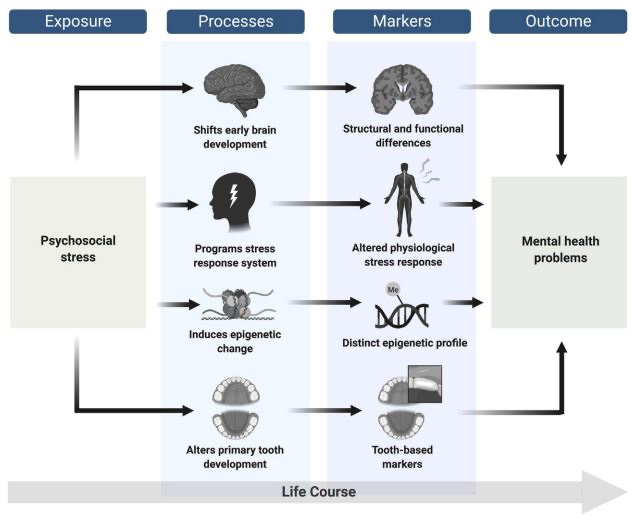 - Davis, K. et al. 2020. “Teeth as Potential New Tools to Measure Early-Life Adversity and Subsequent Mental Health Risk: An Interdisciplinary Review and Conceptual Model.” Biological Psychiatry, 87(6): 502-13. https://pubmed.ncbi.nlm.nih.gov/31858984/